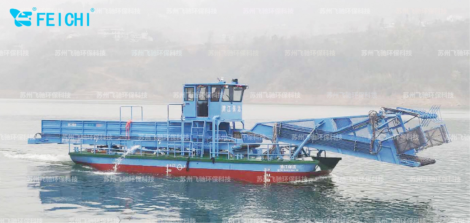 +全自動水域清漂船收集范圍廣,既能清掃體積較大、長形的漂浮垃圾(如樹枝、水葫蘆等),又能清掃體積較小的,成片的漂浮垃圾(如綠萍、樹葉、白色的污染物、塑料袋、空瓶等);