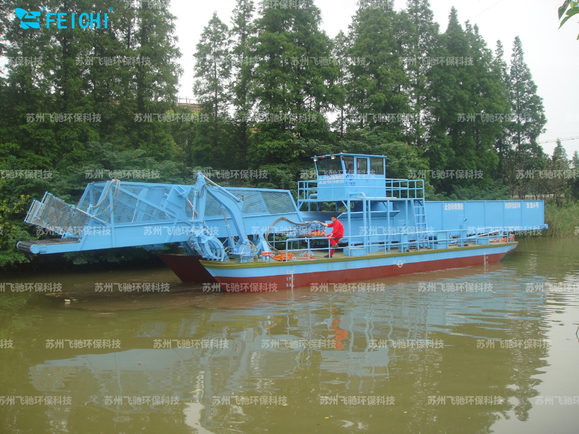 +本船主要用來收集打撈樹枝、樹木及各類水面漂浮垃圾,同時能將收集的垃圾自動卸載到指定的裝載船、岸上碼頭、垃圾運輸車等適應設備上,且連續性好。