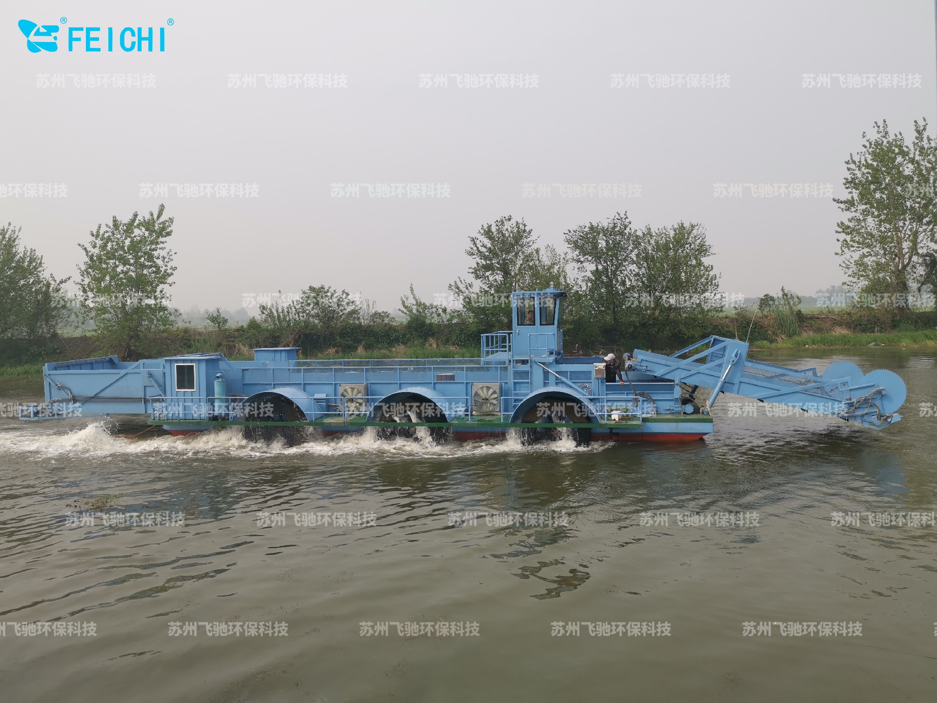 水域保潔供應(yīng)商:飛馳環(huán)保生產(chǎn)打撈船,割草船,浮萍收集船