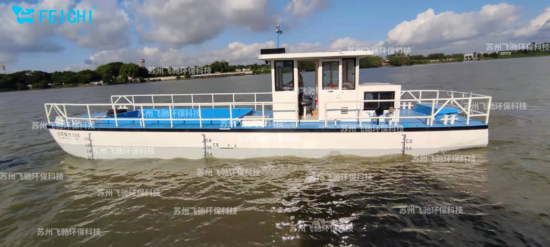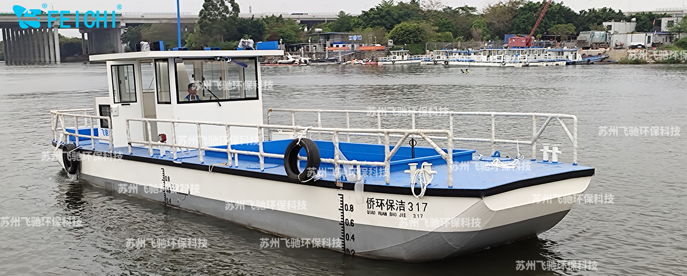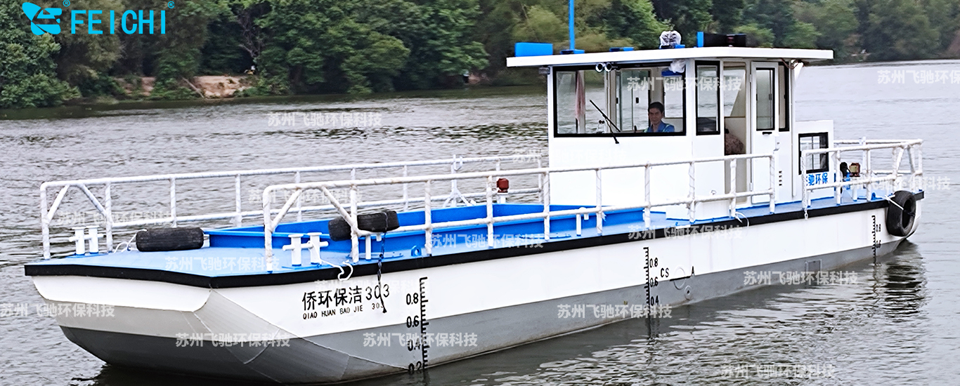 水域保潔供應(yīng)商:飛馳環(huán)保生產(chǎn)打撈船,割草船,浮萍收集船
