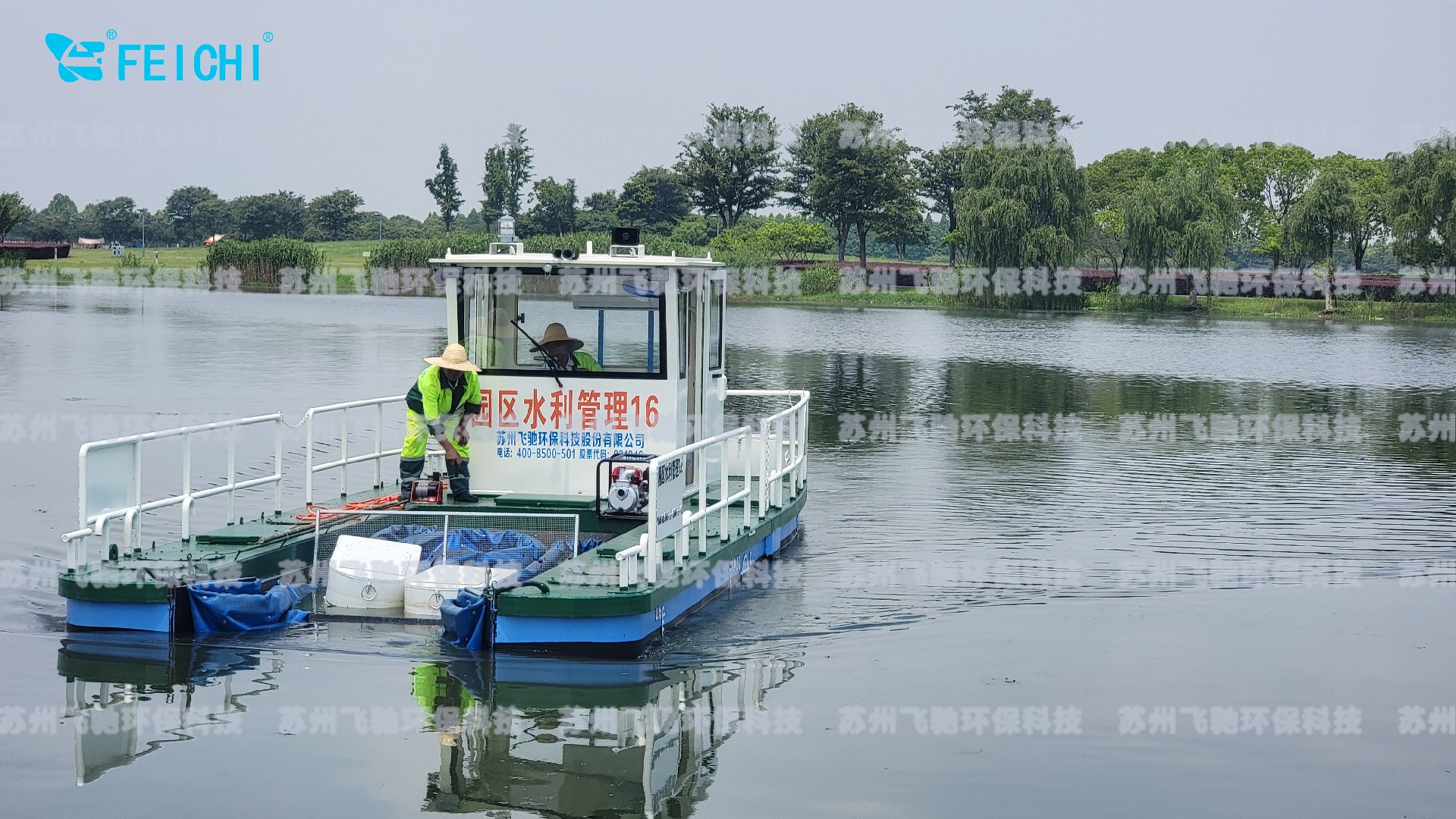 水域保潔供應商:飛馳環(huán)保生產(chǎn)打撈船,割草船,浮萍收集船