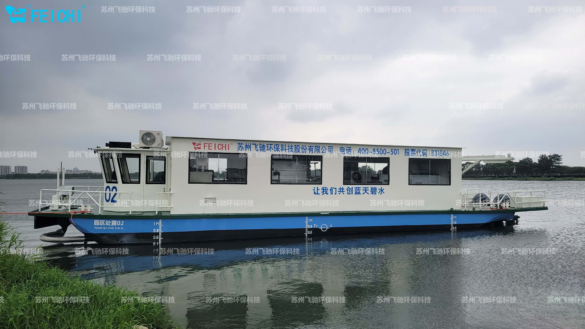 +適用于藍藻量大或藍藻爆發時期。船載式的藻水分離裝置,將藍藻吸取至船體后,形成藻渣后藻水分離,去除藍藻的清水可直接返回水體。