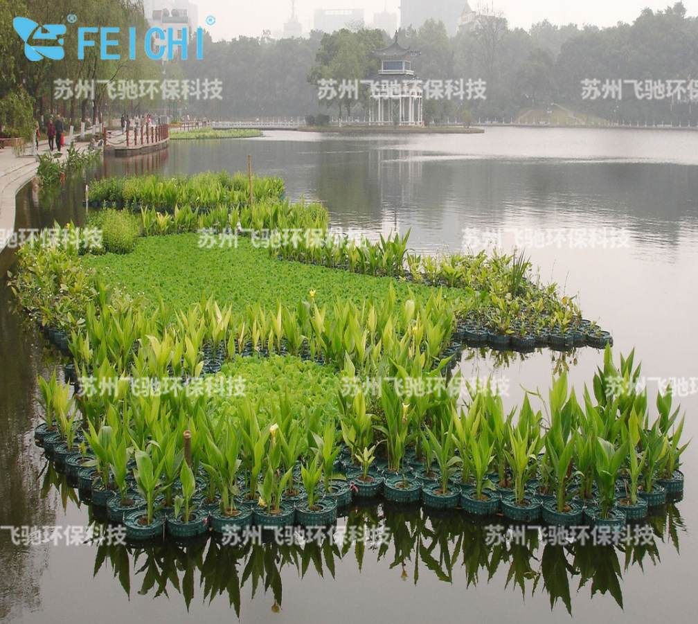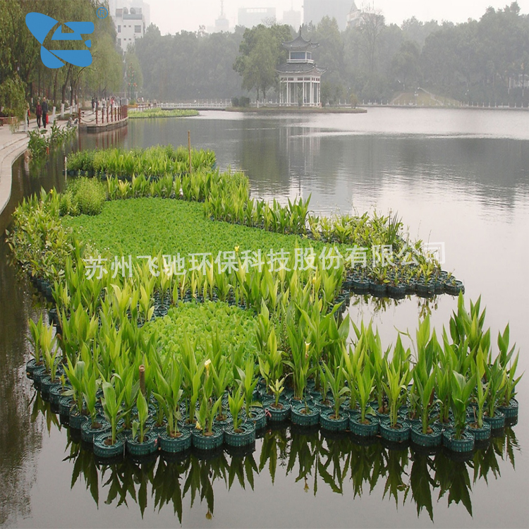 生態浮島利用水生植物吸附氮、磷、有機物的特點進行水質提升,根據不同水體情況進行不同植物的選用,并且可以設計多種造型適用不同場景。