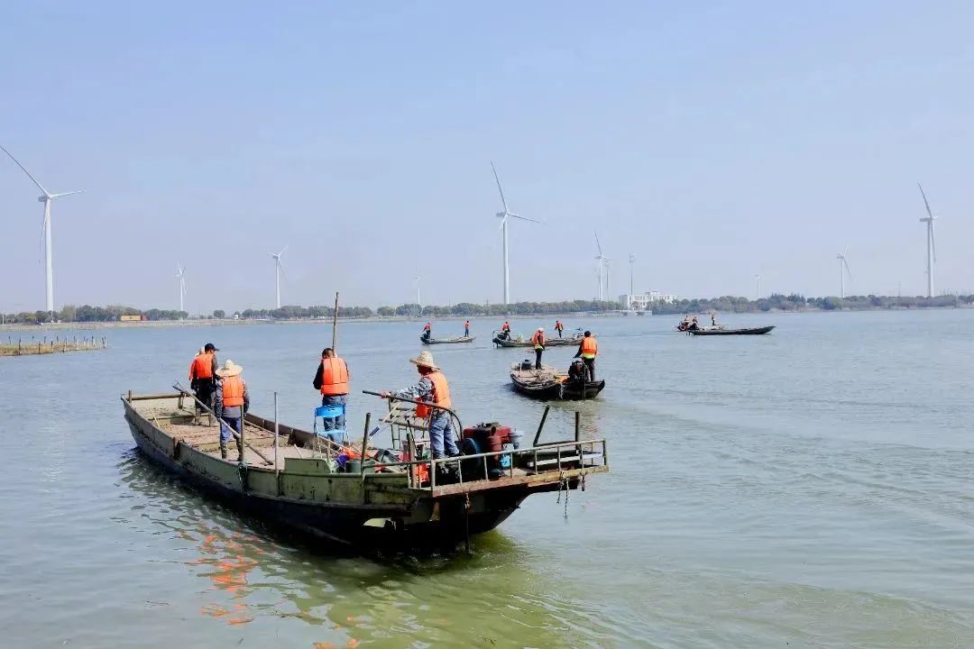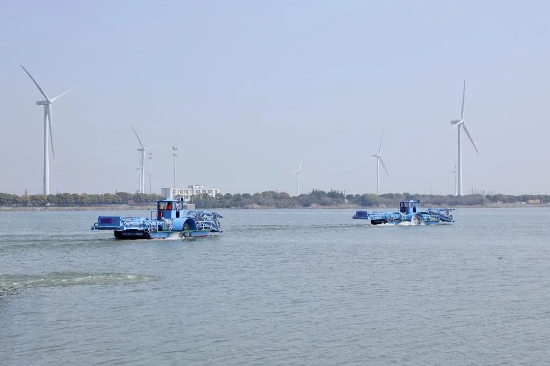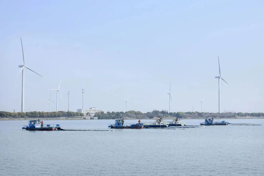 度假區(陽澄湖鎮)坐擁陽澄湖面50.135 km2(占陽澄湖總面積的42.7%),沿湖岸線78.025km。每年3-11月為藍藻防控的安全度夏期,度假區(陽澄湖鎮)作為轄區水域藍藻、水葫蘆防控責任主體,成立藍藻、水葫蘆防控工作領導小組,發布了《陽澄湖鎮藍藻防控應急預案》,將陽澄湖藍藻、水葫蘆打撈納入河湖日常保潔范圍,結合近岸打撈與離岸設防,合理設置藍藻、水葫蘆攔截設施,提升打撈處置效率,形成藍藻、水葫蘆全線防控、全域防控、全程防控的工作局面。